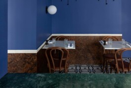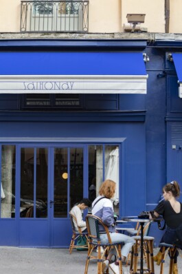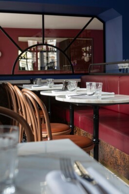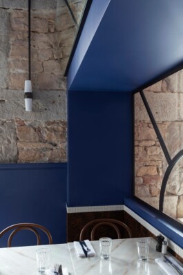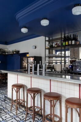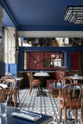 décor entièrement sur-mesure. Une brasserie bleue, bleue, bleue, blanche et rouge, faite pour durer encore 100 ans.